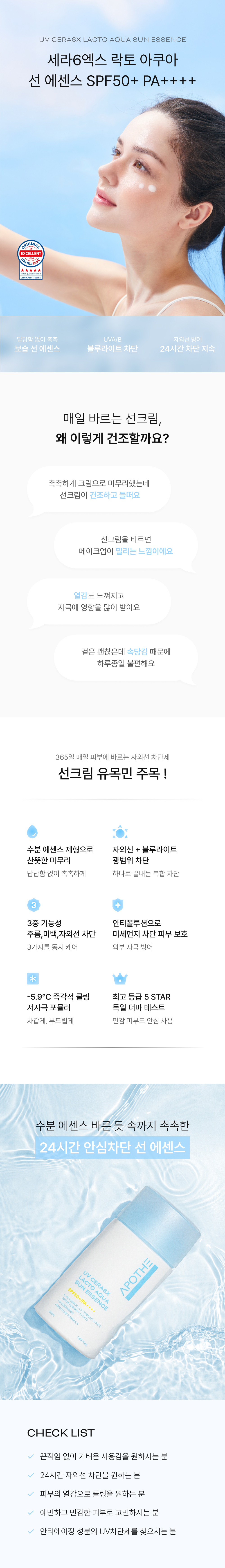 아포테 UV 세라6엑스 락토 아쿠아 선에센스 50ml SPF50+ PA++++